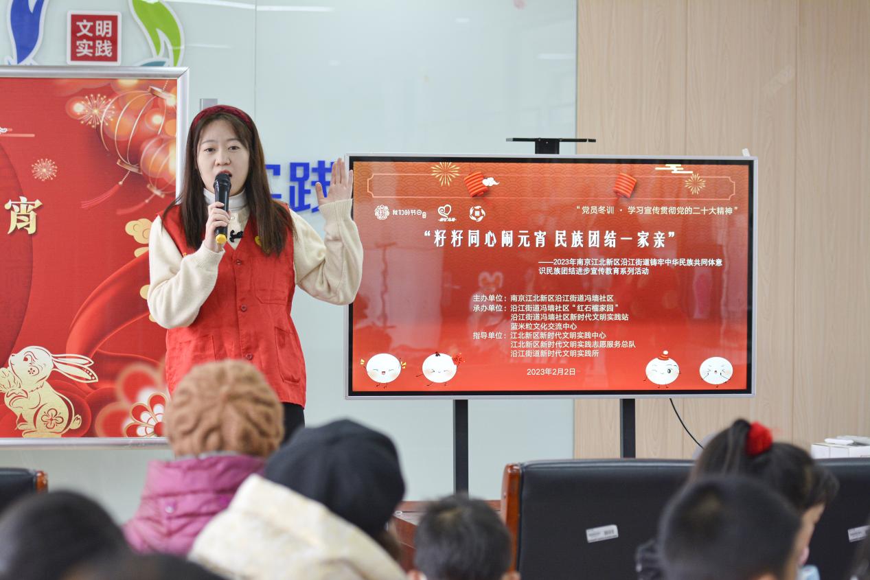 2月3日至5日,南京江北新区沿江街道在辖区多处“红石榴家园”、新时代文明实践站开展了2023年南京市铸牢中华民族共同体意识民族团结进步宣传教育系列活动,以“籽籽同心闹元宵 民族团结一家亲”为主题,组织辖区各族群众开展了热热闹闹的元宵民俗会,在增强中华民族文化认同的基础上,尊重各民族各具特色的文化,鼓励各族文化间的交流互鉴。