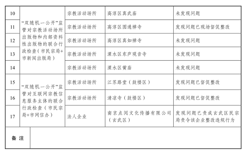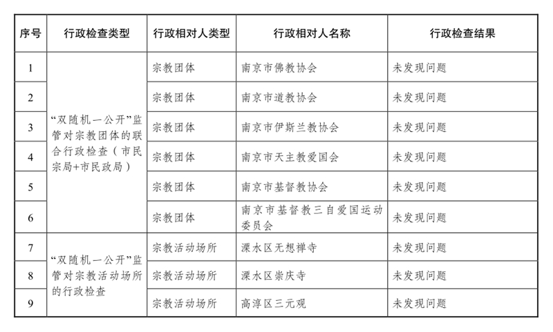 南京市民族宗教事务局2024年度行政检查公示信息