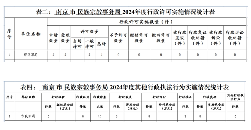 南京市民族宗教事务局2024年度行政许可类和行政其他类数据公示信息