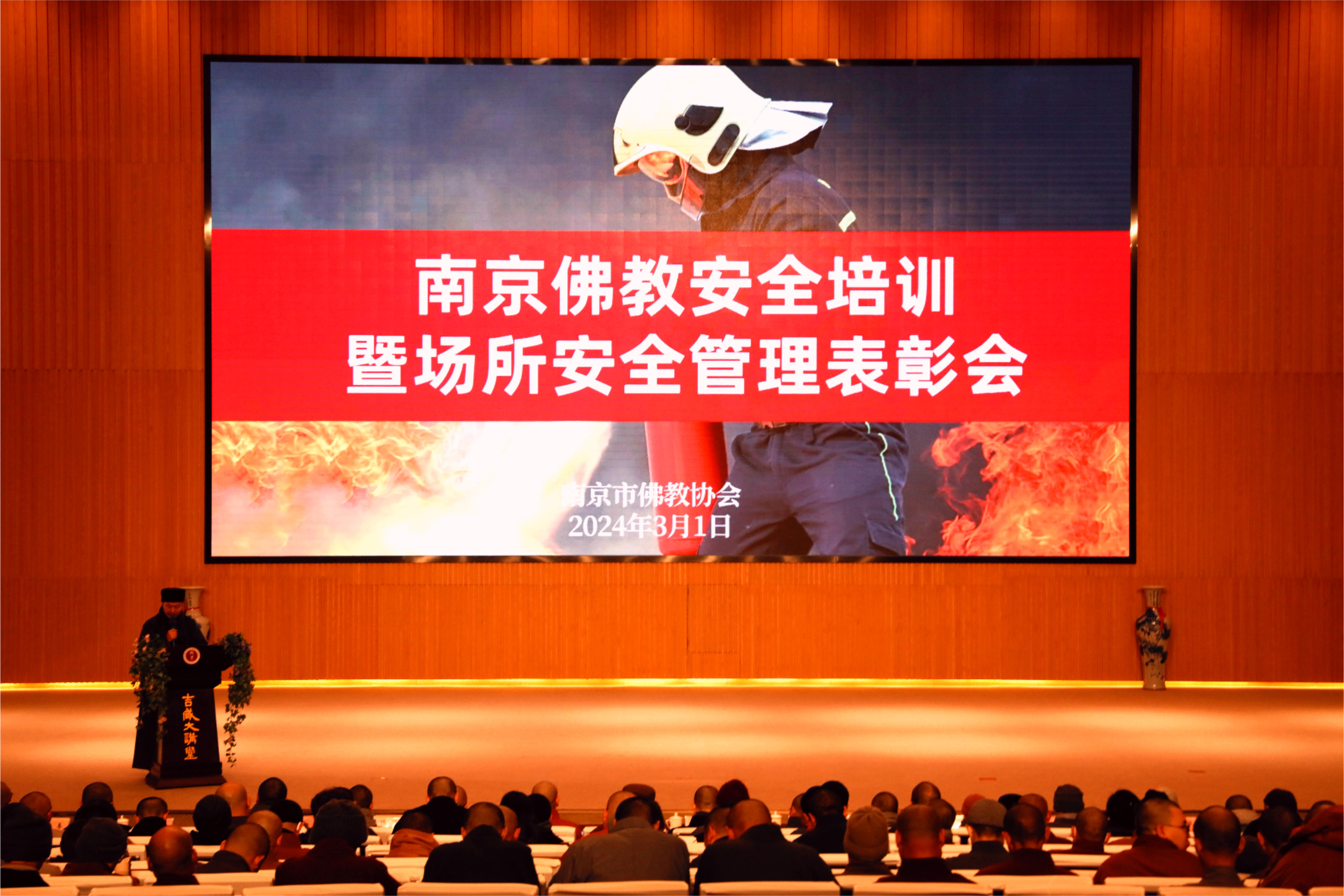 3月1日,南京市佛教协会在中国佛学院栖霞山分院举行南京市佛教安全员培训活动,全市60余所佛教活动场所70多位安全员参加了本次培训,南京市佛教协会会长传静法师就2024年安全工作进行动员部署。