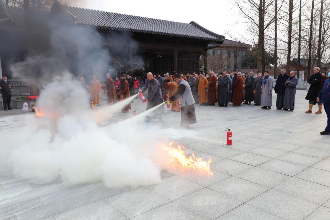 活动邀请南京市栖霞区消防救援大队专家,根据南京佛教寺院安全管理实际情况,结合近期来发生的重大消防安全事故典型案例,从文物古建筑火灾特点及处置方法、防火常识与疏散逃生、消防器材的种类及使用方法、电动车火灾防控等方面展开专业讲座,以图文展示、短视频播放等方式,详细讲解生活中常见火灾的起因、防火常识、火灾救援、灭火器的使用等安全知识和自救常识,增强培训人员实践操作能力。