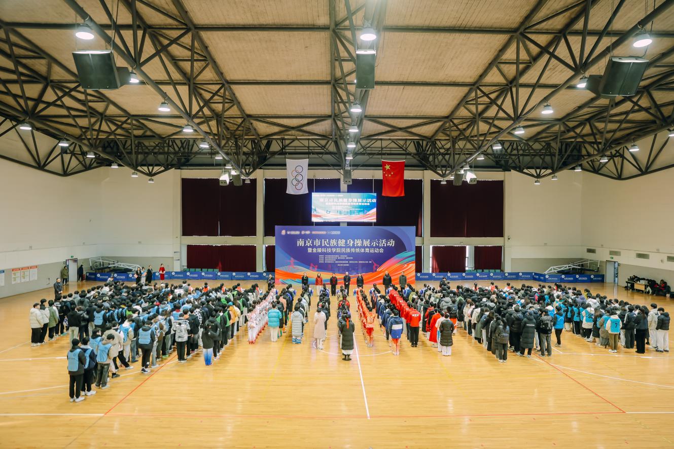 12月29日,由江苏省民宗委、江苏省体育局指导,南京市民宗局、南京市体育局、金陵科技学院联合主办的南京市民族健身操展示活动暨金陵科技学院民族传统体育运动会在金陵科技学院(江宁校区)举行,来自全市各区的10支民族健身操代表队及金陵科技学院各二级学院的17支民族传统体育项目代表队齐聚一堂,演绎了一场充满民族风情与体育精神的文化盛宴。江苏省民宗委、江苏省体育局相关部门领导,南京市民宗局、南京市体育局相关负责领导,各级民族传统体育项目基地负责同志及参赛运动员近1000人共同参加活动。