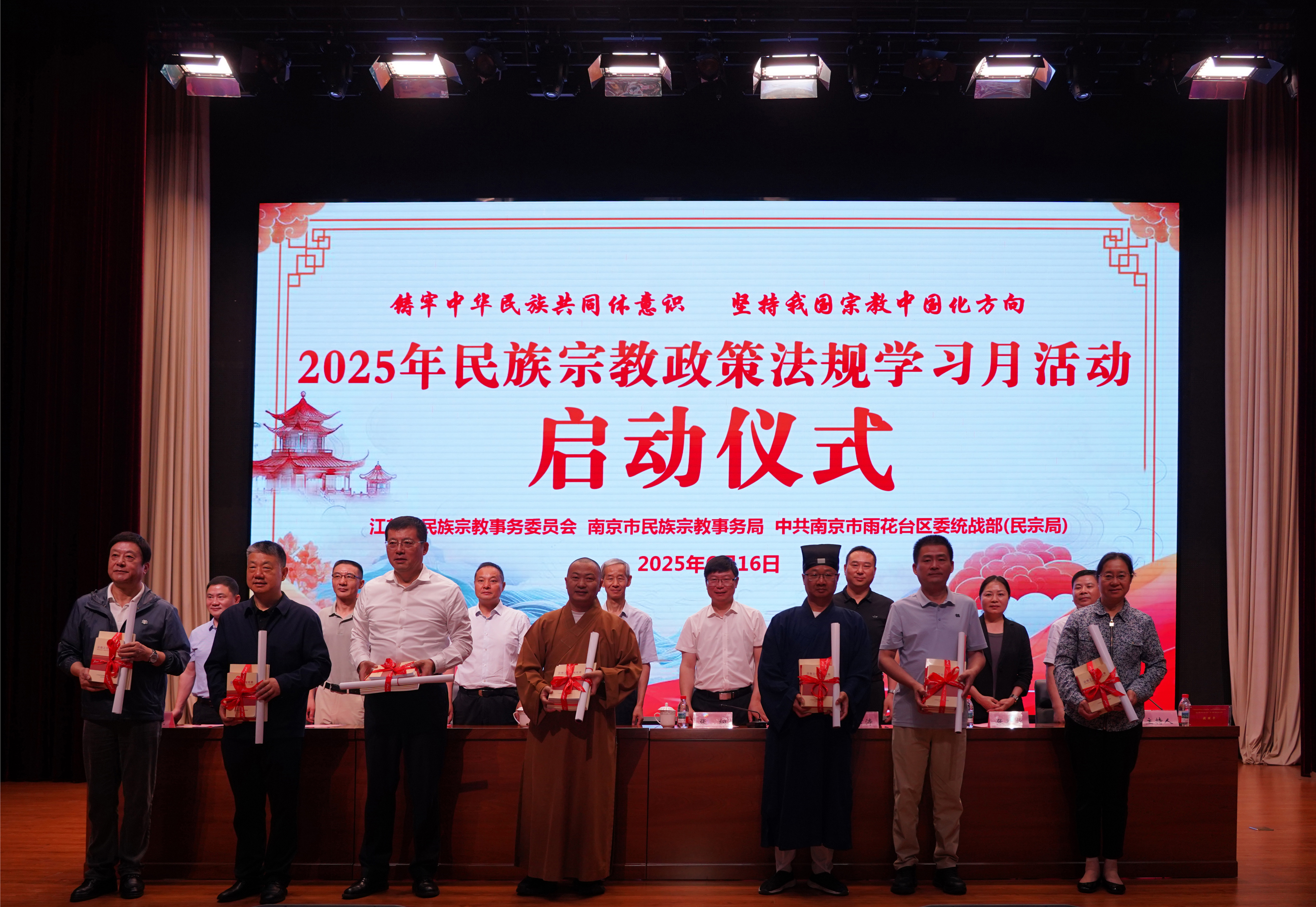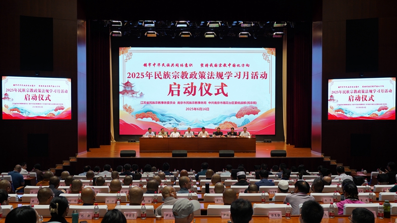 6月16日上午,由江苏省民族宗教事务委员会、南京市民族宗教事务局和南京市雨花台区委统战部(民宗局)共同主办的“2025年民族宗教政策法规学习月活动启动仪式”在雨花台区委党校举行。省民宗委一级巡视员缪文军,市委统战部副部长、市民宗局局长张纲出席活动,省市区三级民宗工作干部、市有关部门领导、各全市性民族宗教团体副秘书长以上人员及部分宗教活动场所主要负责人约220人参加了活动。